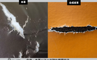 全体張替えをすると施⼯料⾦が⾼額になってしまいます。背もたれや肘掛けはキレイだけど座⾯などの⼀部のみ破れている場合は、座⾯の部分張替え+レザーリペア技術を組み合わせることにとり、低料⾦で修理代⾦を抑えることが可能です。