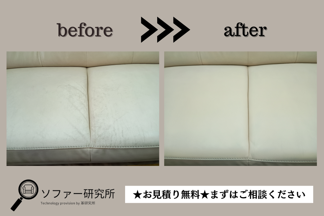 ソファーを長年使用していると、よく座る座面部分や肘掛け部分にスレや剥がれが出来てきます。