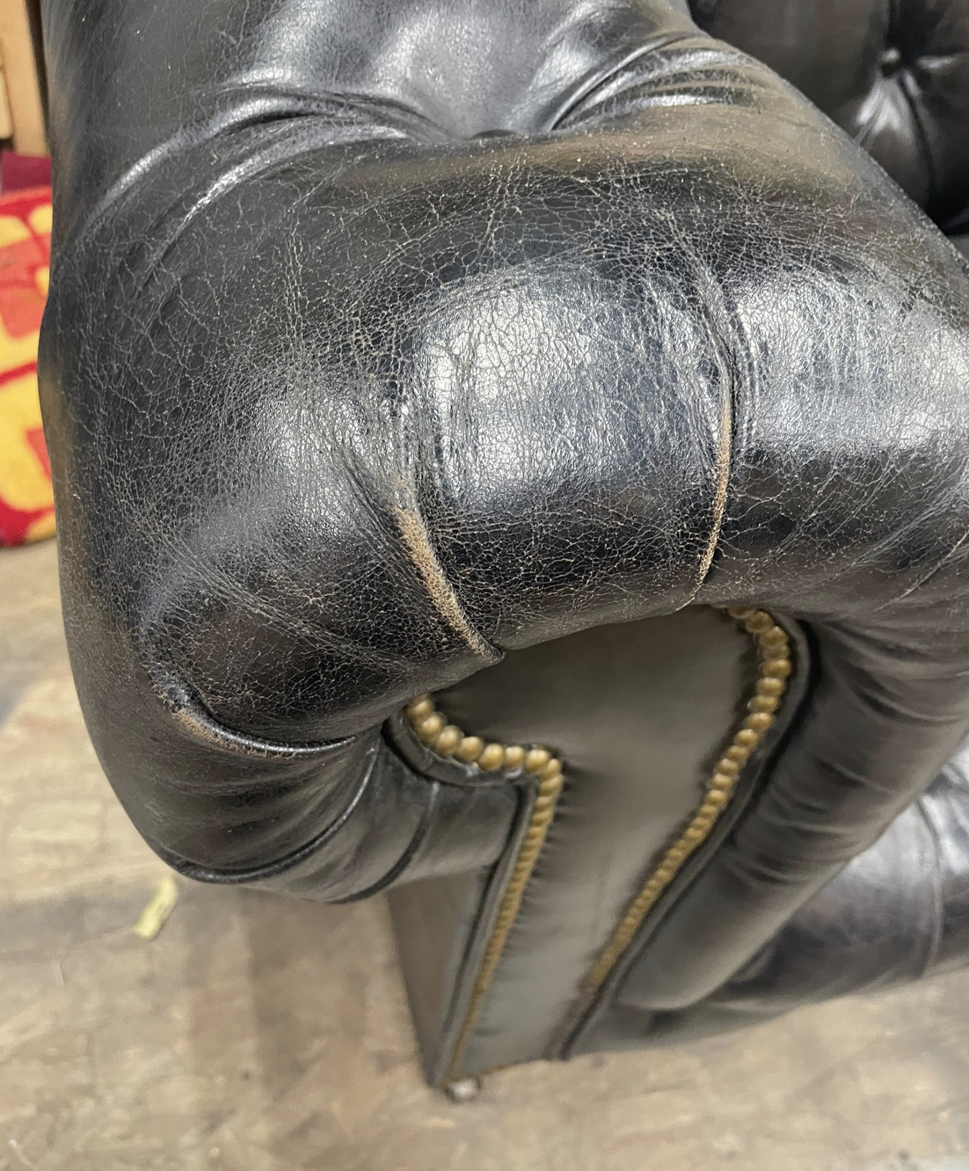 本日はチェスターフィールド・3人掛けソファのリカラー施工をご紹介させて頂きます。