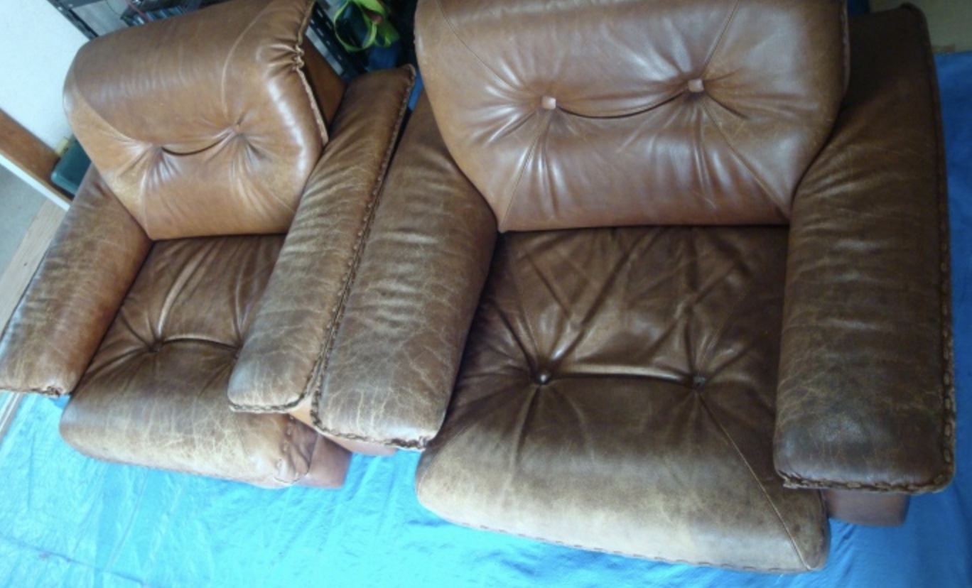 今回紹介するソファは1人掛けソファー2脚の染め直し施工になります。