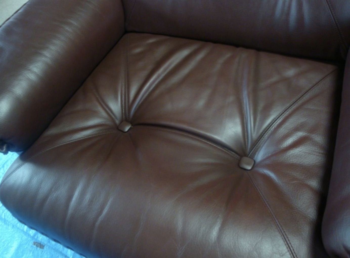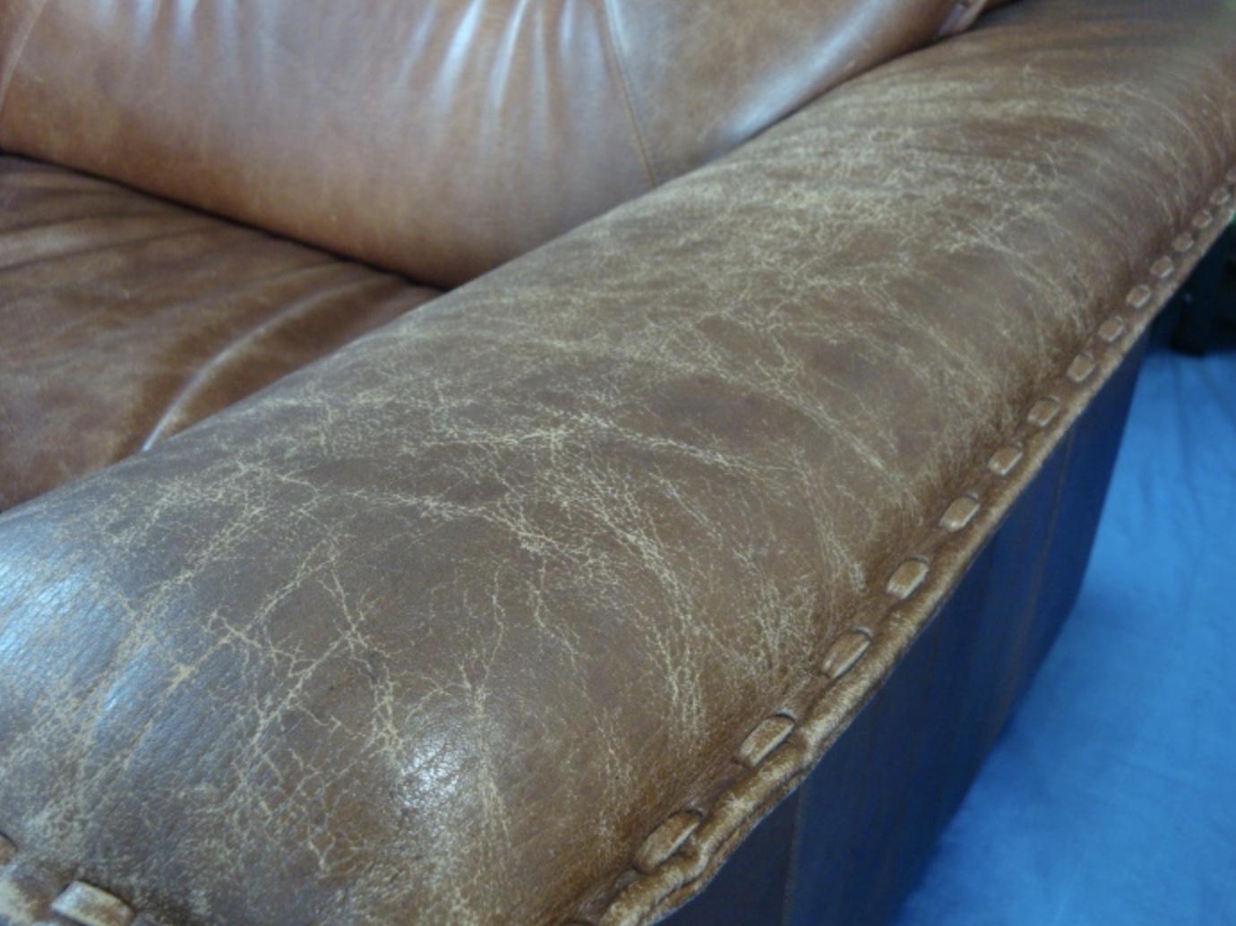 ソファの擦れ日焼けにより劣化し、ブラウンのソファの座面など色あせひび割れができてしまっています・・・。